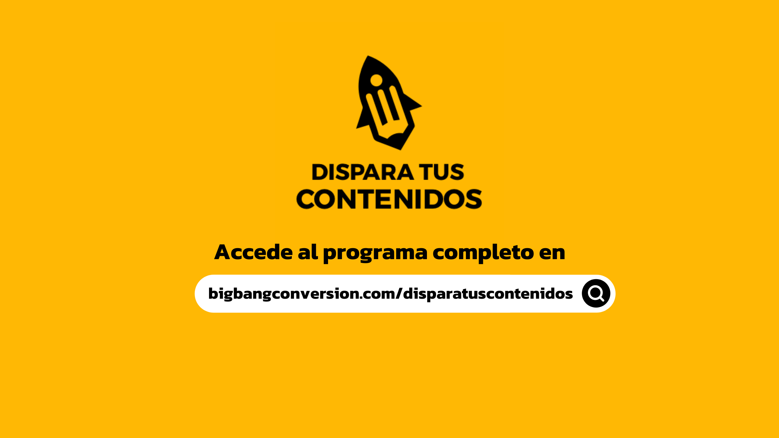 También te cuento el nuevo curso que hemos abierto en Big Bang Conversion, con la colaboración de Dean Romero, llamado Dispara tus Contenidos. En el que hablamos de cómo redactar textos que posicionan y enamoran a Google, para poder multiplicar tu alcance, lista y ventas.