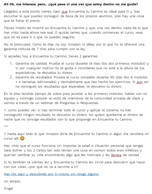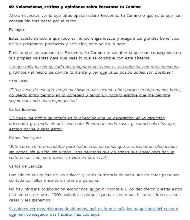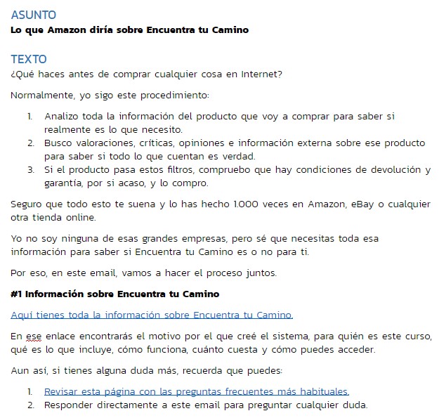 El email de ejemplo de Encuentra tu camino: