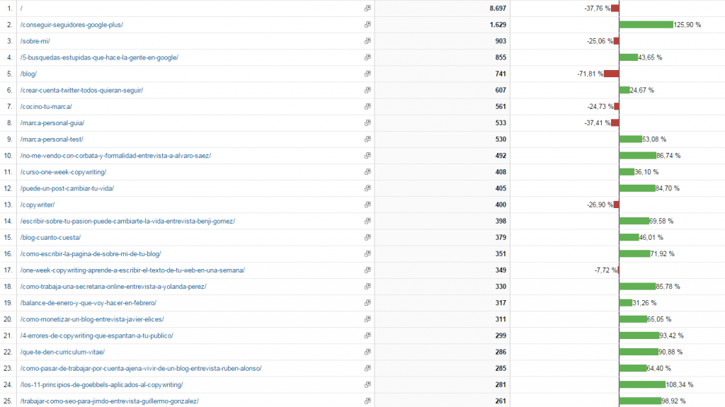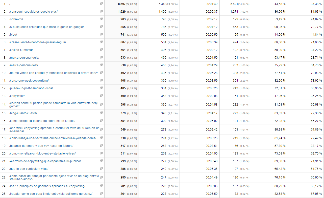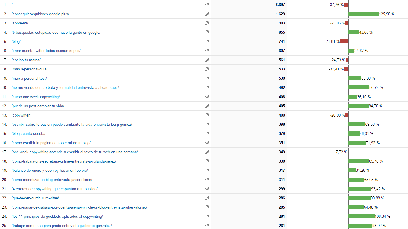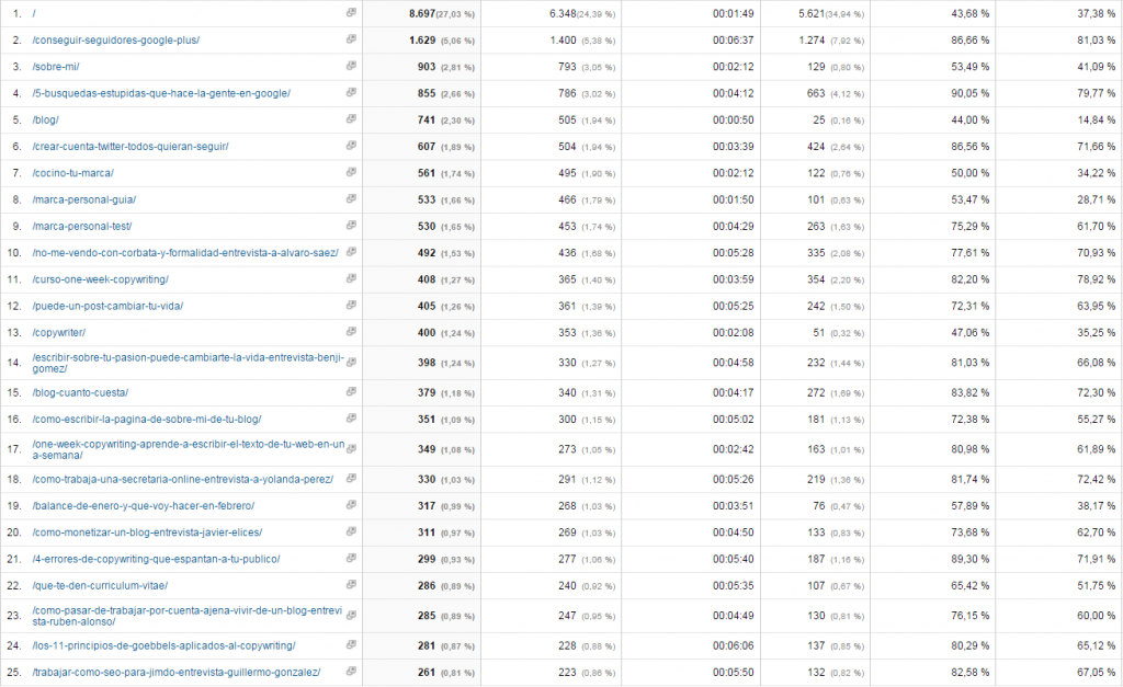 ¿Y cuál es el resultado? Aquí tenéis las 25 páginas con más éxito que tiene mi blog: