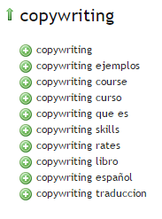 Y con deciros que, por supuesto, uno de mis futuros objetivos es escribir un libro sobre copywriting, ya os podéis imaginar lo que me gusta esta herramienta. Y eso que tan solo os he mostrado las palabras que aparecen con más búsquedas y no las búsquedas por cada letra del abecedario. Otras keywords como "copywriting fórmulas", "copywriting para SEO", "copywriting ideas" o "copywriting quotes" me podrían dar para hacer más posts.
